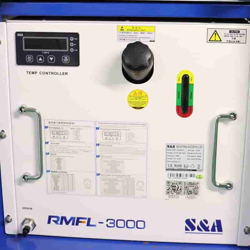 Resfriador de água da marca S&A para resfriamento de fonte de laser e cabeça oscilante.